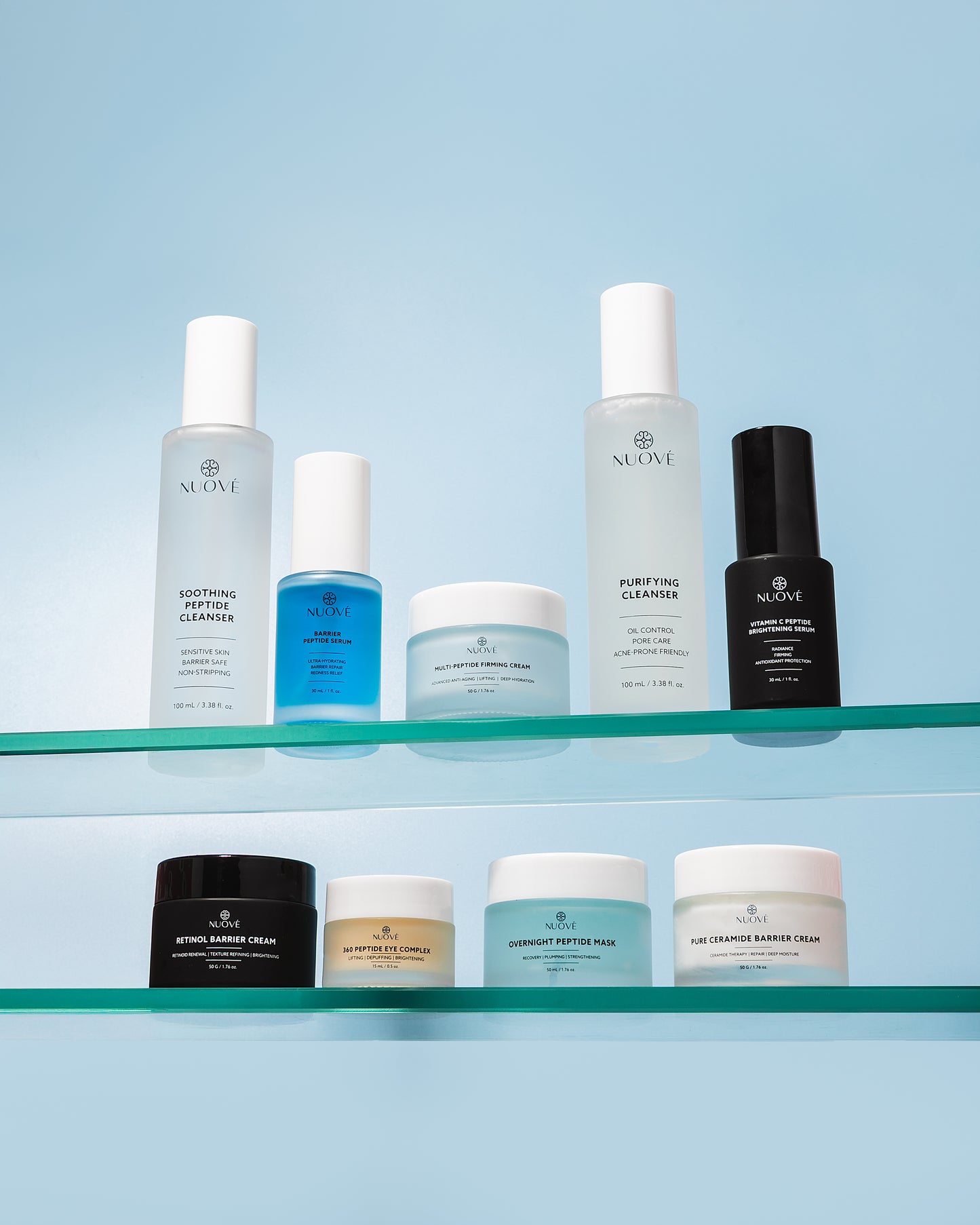 NUOVÉ was created to challenge that. We set out to build a skincare line grounded in skin biology, peptide science, and barrier health — not trends, hype, or empty claims. Every formula is intentional. Every active earns its place. Nothing is included just to sound luxurious.